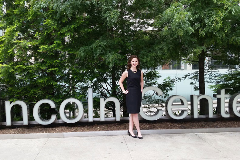 Recent Miami Law graduate Dana Vouglitois promotes the arts at Lincoln Center for the Performing Arts.