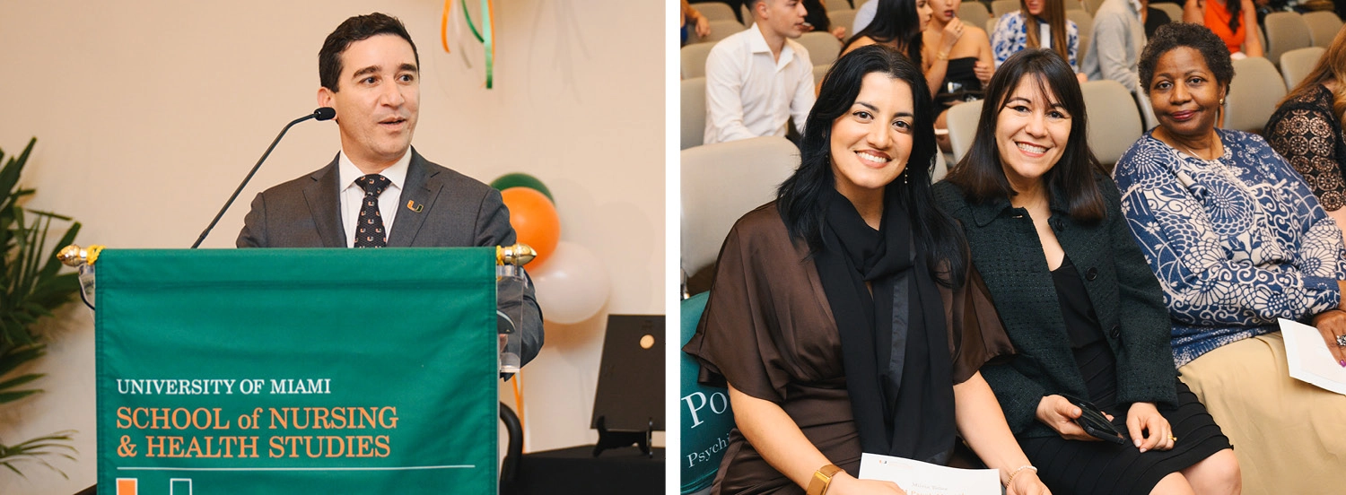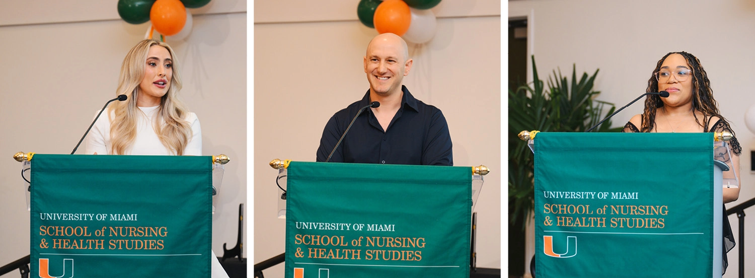 Emceed by Dean Hudson P. Santos Jr., the University of Miami School of Nursing and Health Studies packed three student speakers, a dozen award presentations, and a genuine atmosphere of celebration into its Fall 2025 Awards and Pinning Ceremony. “Congratulations to all of our honorees and graduates,” said Dean Santos. “We’re so proud of every single one of you. You did it.”