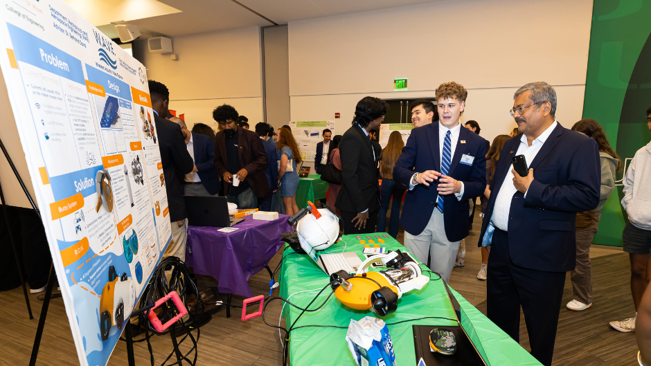 The two solutions were part of more than 60 capstone projects that gave students the opportunity to present solutions to real-world challenges they tackled over the course of the academic year. Faculty members, industry professionals, and peers reviewed and evaluated the projects, which spanned the six departments of the college. This year, the first graduating cohort of students from the Innovation, Technology, and Design Program also presented their capstone projects.