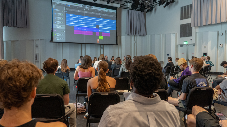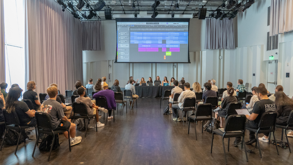 During the 2025 Spring semester, students across the Frost School experimented with the intersection of music and AI. In doing so, they are learning how to better harness the power of AI, coupled with their musical creativity and experience, to generate musical cues for media projects, songwriting collaborations, live performances, and more.