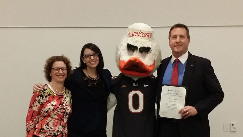 The Miami Law students, all 3Ls, were nominated on the basis of academic merit, service and extracurricular involvement. Dr. Patricia Whitley, UM’s Vice President for Student Affairs, congratulated students from departments across the University in a ceremony at the Student Activities Center.
