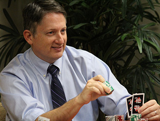 Dan Ravicher is a cutthroat on the poker tables. The 40-year-old seems like a pleasant enough fellow but gives no quarter when playing, even with one whose previous card playing experience is confined to playing Go Fish with preschoolers, and losing. He “stacks” me, taking all my chips.