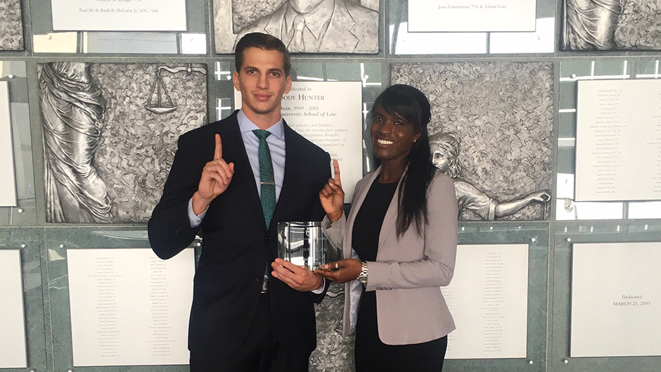 Miami Law’s team of 3Ls Jhanile “Trudy” Smith and Andrew Schindler won the 9th annual Emory University School of Law Civil Rights and Liberties Moot Court Competition this past weekend. They beat the University of Texas in the Finals, Stetson in the Semi-Finals, and Baylor in the Quarter-Finals. Over 30 teams participated in this year’s competition.