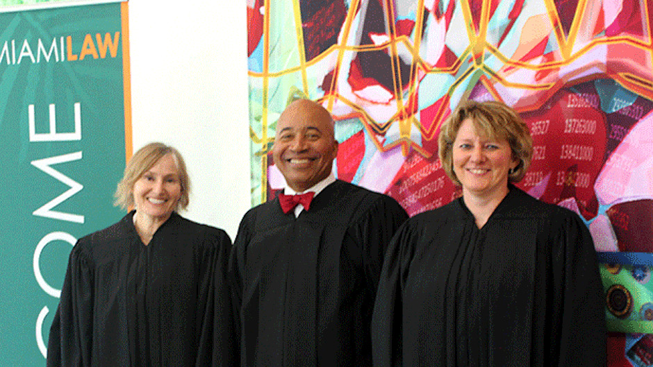Each side was given 30 minutes for argument, with questions coming often from the presiding judges. The court concluded without a decision being made; it will be released in a formal document at a later time. Concluding the session, the Judges once again came back out, this time without their robes, for a casual question and answer session that included the attorneys and the audience made up of law students and interested members of the Miami Law community and public.