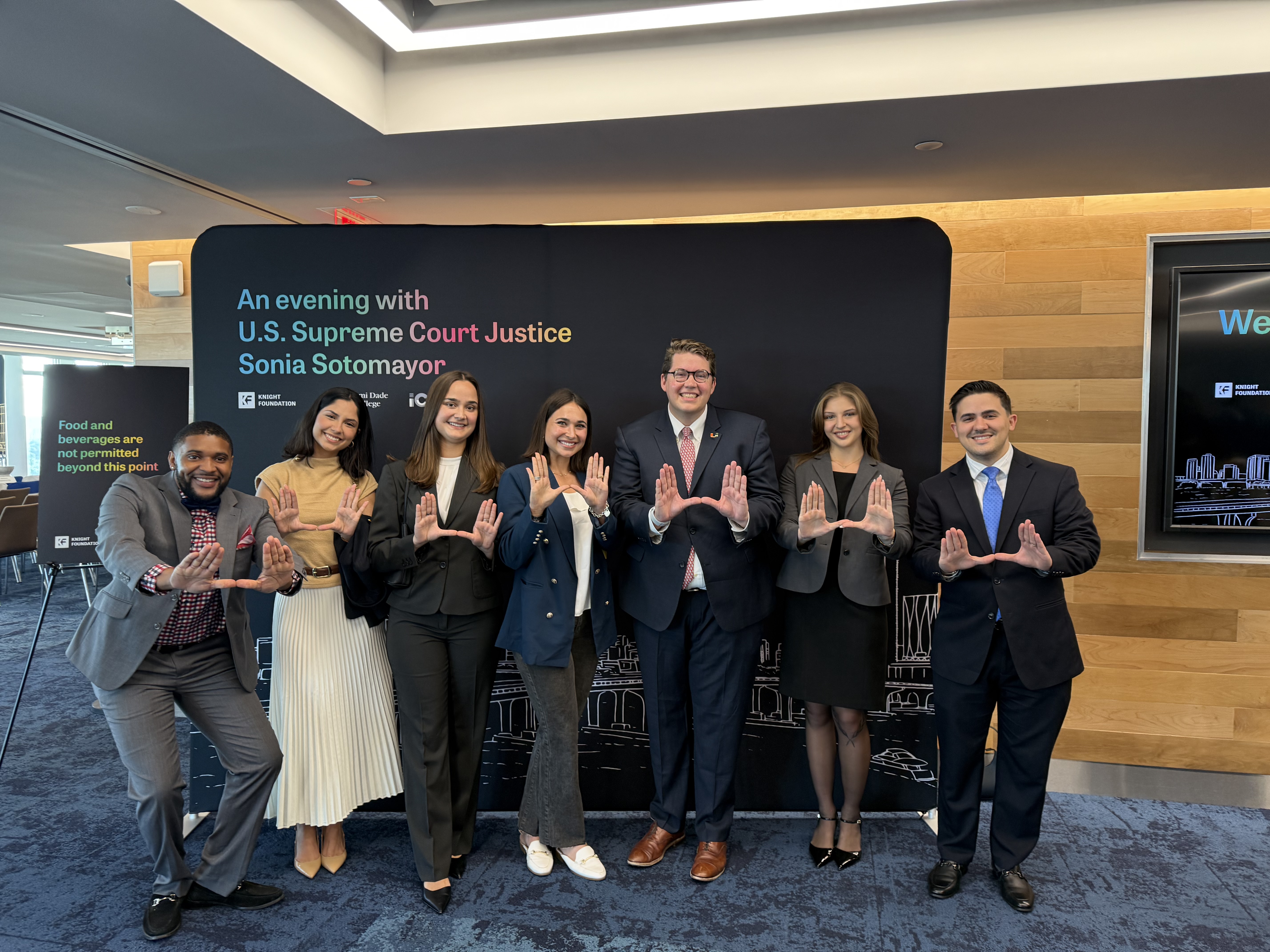 Associate Justice Sonya Sotomayor, the first Hispanic and third woman to serve on the Supreme Court, held a fireside chat event in Miami in February, where she told students, including a dozen School of Law students, "We adults have messed up the world for you." Associate Supreme Court Justice spoke to a crowd of students at Miami Dade College, where she inspired future civic leaders and urged students to drive meaningful change, "If you're relying on the adults to fix it, it ain't gonna happen." She also lectured at the School of Law in 2013.