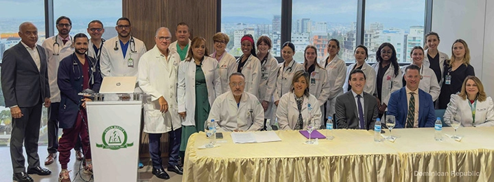 Claudia Diaz, a critical care RN in Miami, described the week she spent in Santiago de los Caballeros, Dominican Republic, with nine fellow Master of Science in Nursing students and two faculty members as “nothing short of extraordinary.” Diaz’s action-packed week from June 7 to 14 included observing open-heart surgery, team-teaching two clinical workshops, and assisting in the emergency department. “I had the privilege of working alongside brilliant residents and doctors who generously shared their knowledge and walked us through their clinical processes with patience and depth,” said Diaz, who graduates this August. Professor of Clinical Johis Ortega, associate dean for hemispheric and global Initiatives, and nursing faculty member Erick Zarabozo accompanied the students during their time at Clínica Médica Universitaria Unión del Norte. “Our students rotated through diverse units at the hospital according to their program track,” said Ortega. “Every student’s experience was different.” Andrea Zdrnja, B.S.N. ’24, for example, got to shadow an oncological gynecologist. Zdrnja’s only complaint? “I wish we had more time,” she said. “A week to pick the doctor's brain definitely is not enough. I would go again if given the chance.” The week culminated in an official renewal of the longstanding educational partnership between both institutions.
